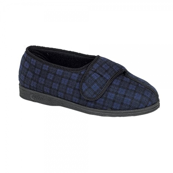 EDWARD Mens Wide Fit Slippers Navy/Grey mens wide fit slippers