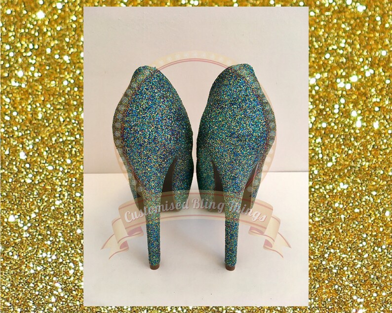 Peacock glitter heels Peacock glitter custom glitter shoes