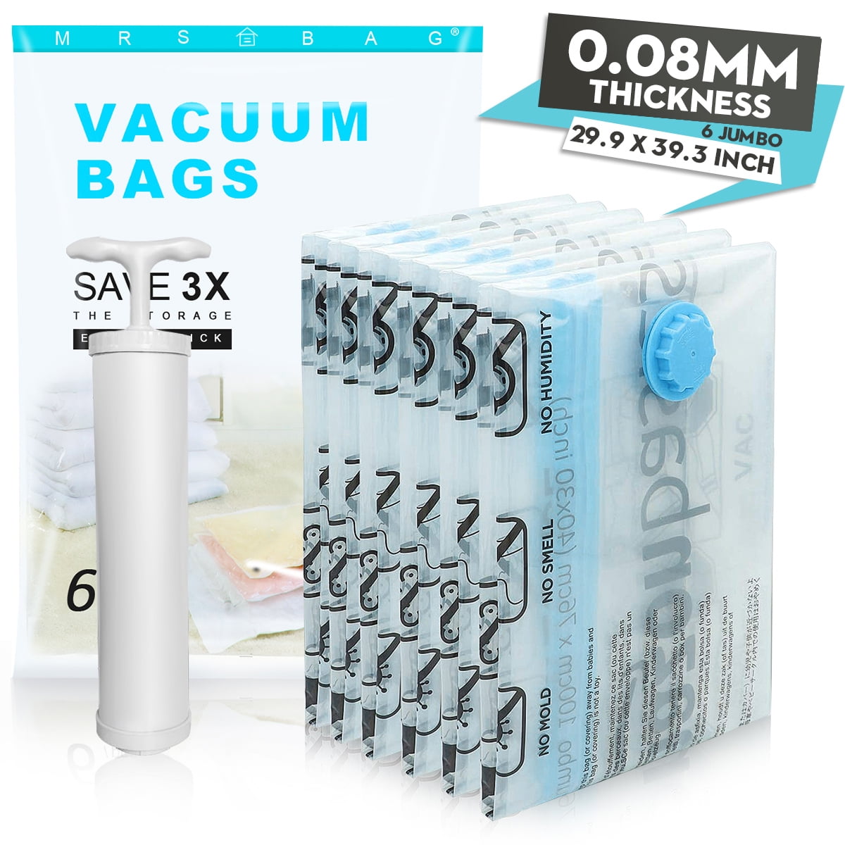 6/8/12/20PCS Vacuum Storage Bags, Space specialized travel pump