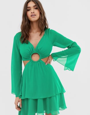 asos green long sleeve dress