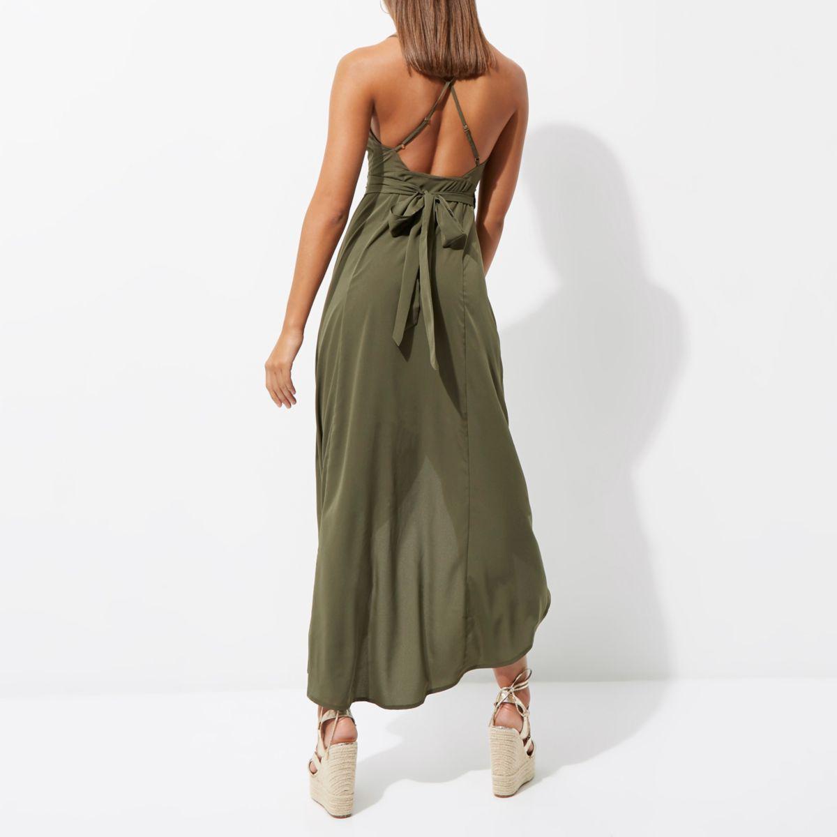 Khaki Green Embellished Wrap Maxi Beach khaki beach dress