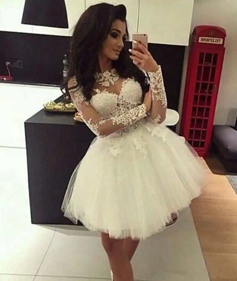 Tulle Appliques Lace Cocktail Dresses homecoming dresses 2019 long sleeve