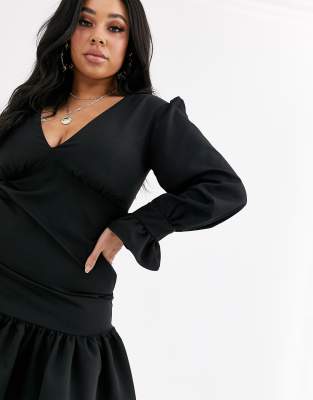 Detail Black Long Sleeve Skater Dress black long sleeve skater dress