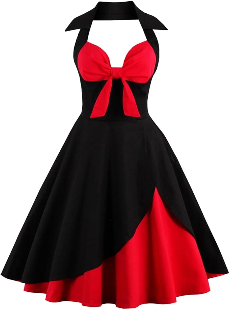ZEZCLO Retro Halter Bowknot Swing Tea vintage style cocktail dress