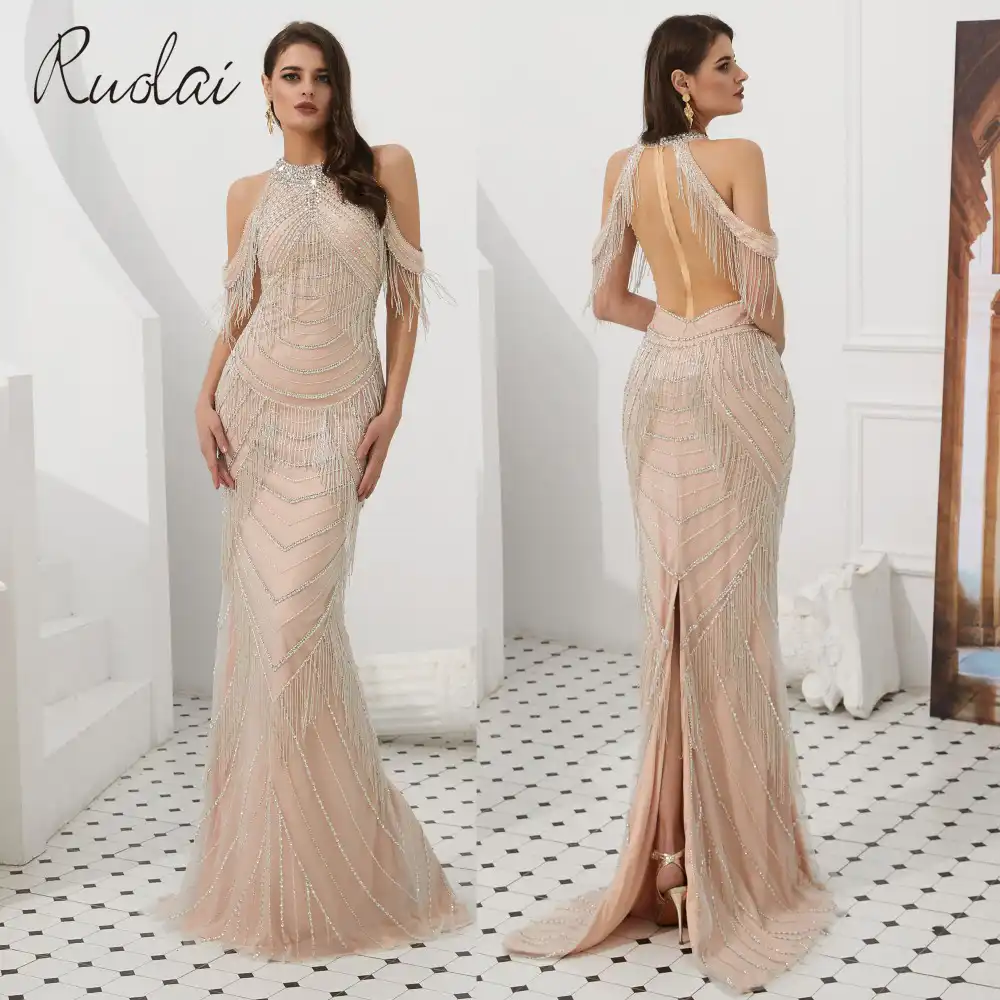 New Mermaid Luxury Evening Dresses Long tassel evening dress