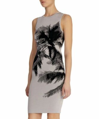 KAREN MILLEN 2 UK 10 GREY PALM Print karen millen sporty bodycon dress