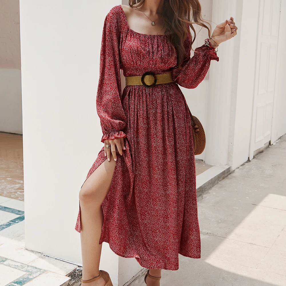 Elegant Long Sleeve Floral Wrap Dress long sleeve floral wrap dress