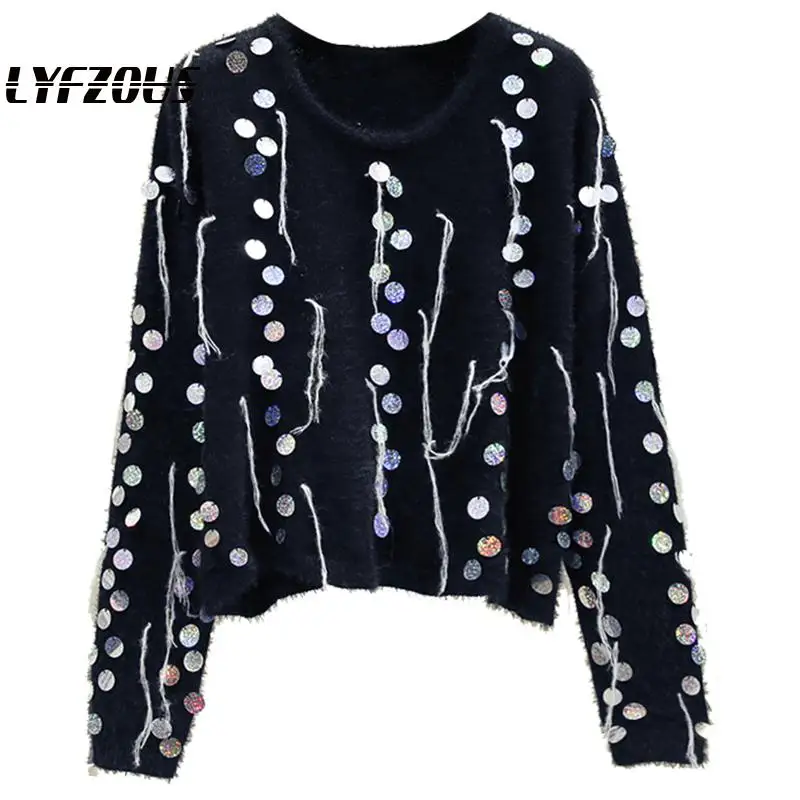 Autumn Winter Women Long Sleeve sequined sweaters