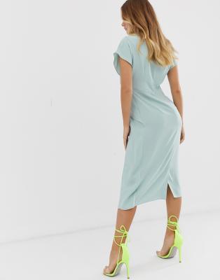 ASOS DESIGN twist and drape front midi asos duck egg blue dress