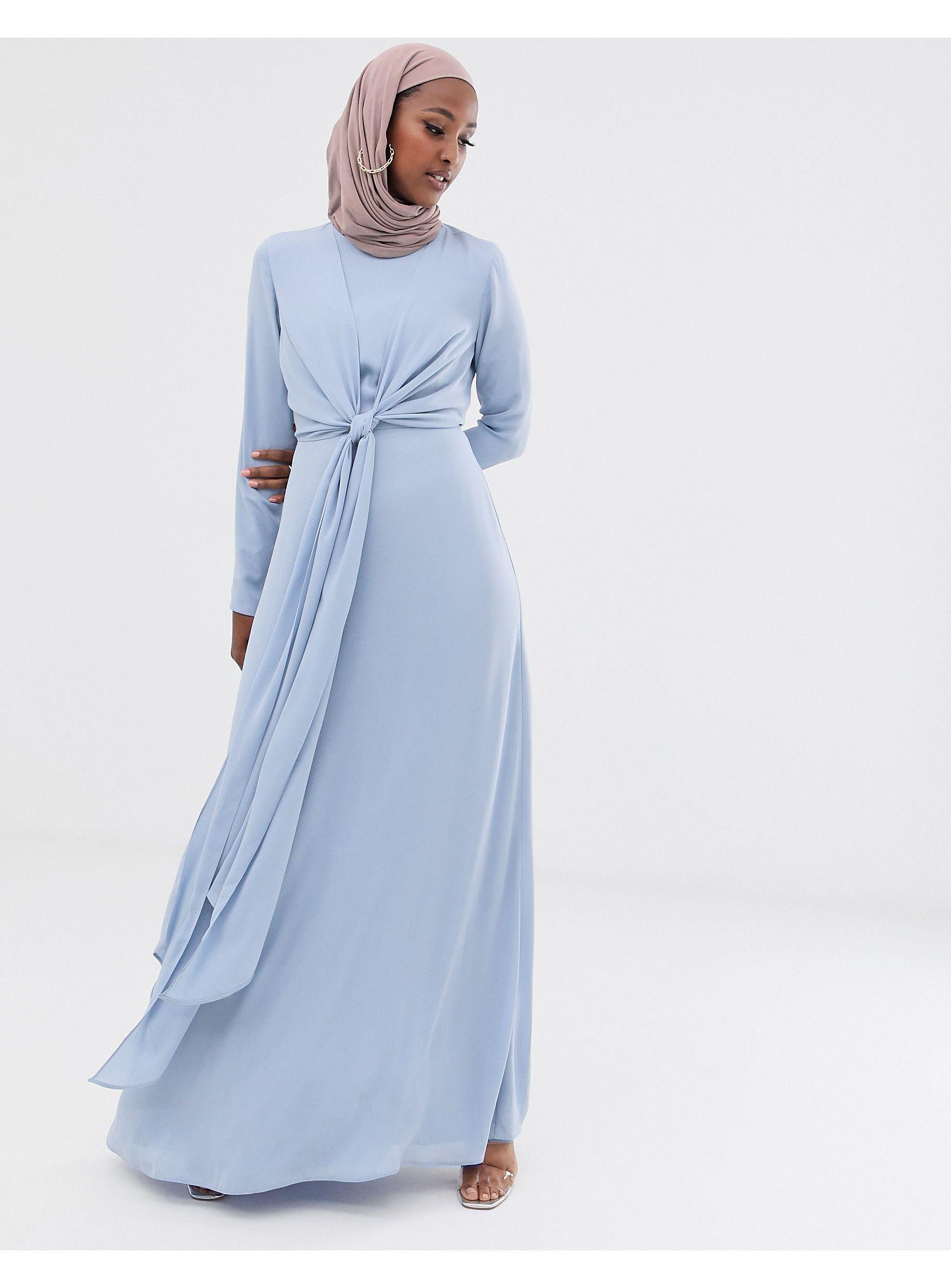 ASOS Synthetic Maxi Dress With Wrap asos blue long sleeve dress