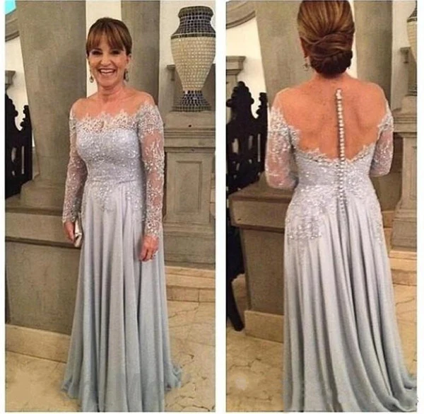 Bride Dresses Lace Sheer Neck silver mother of the bride
