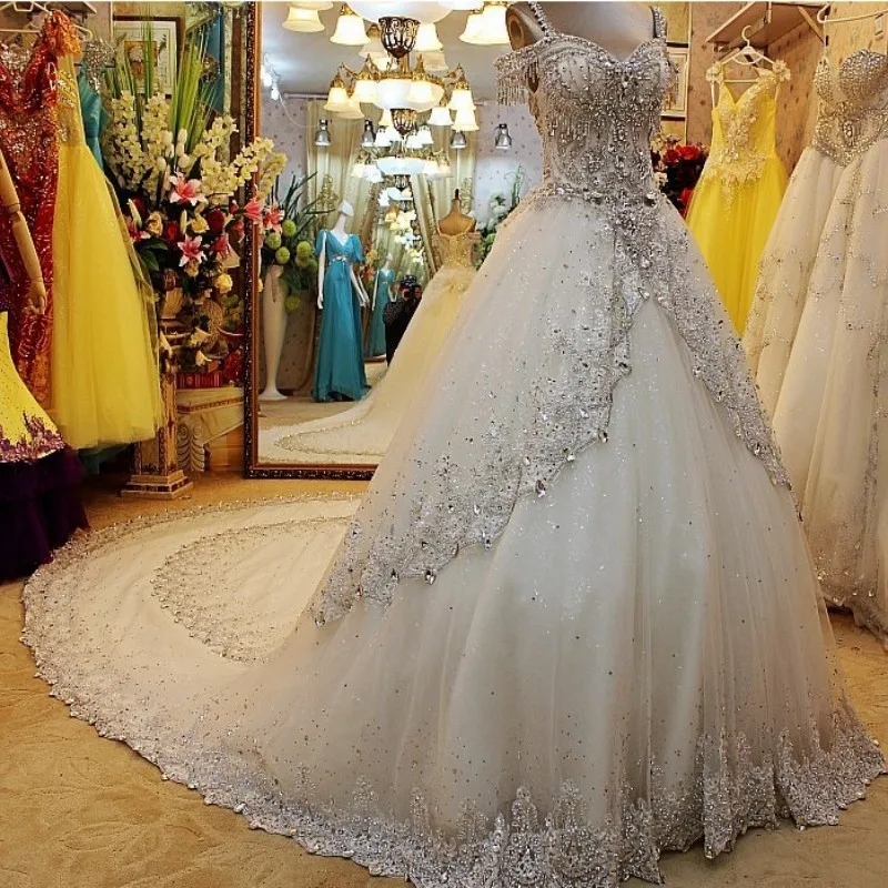 white wedding dresses with diamonds