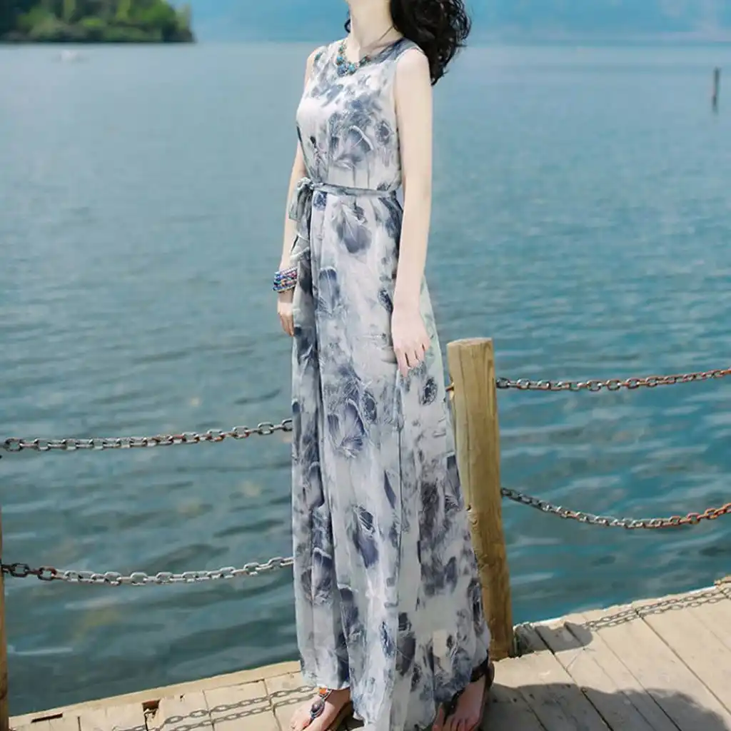 WOMENS SLEEVELESS HIGH-WAIST PRINTED sleeveless frock for ladies