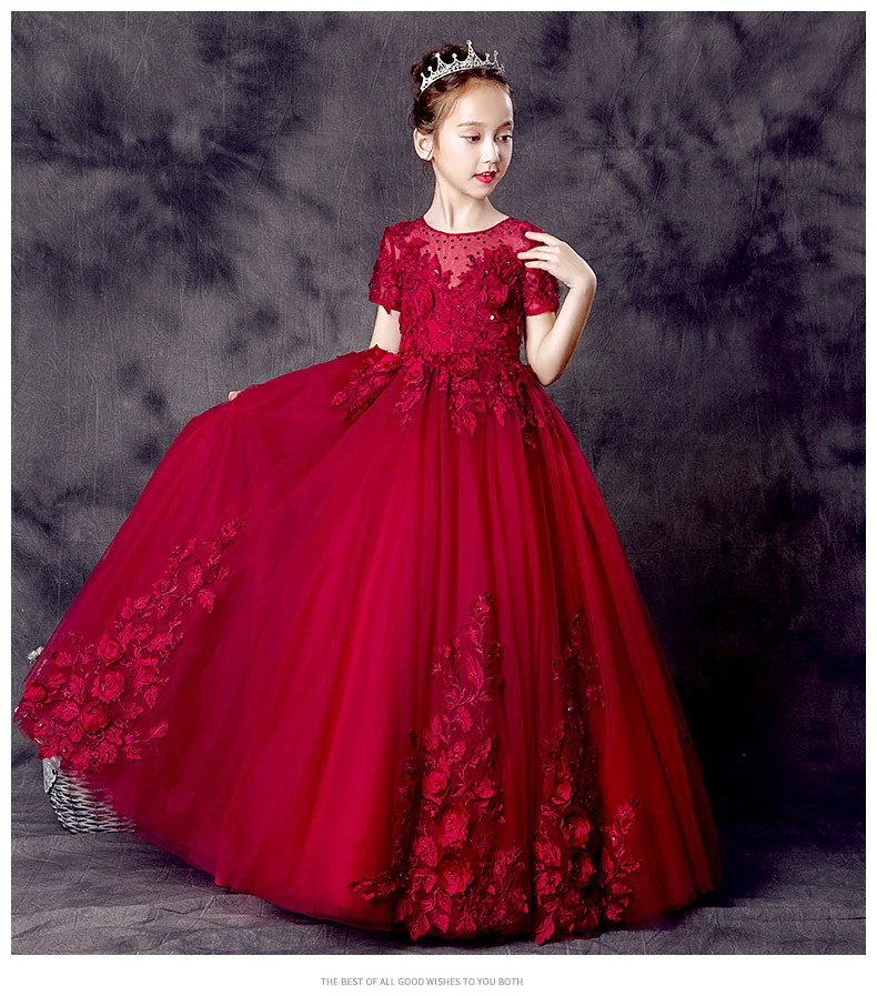 Pageant Kids Wine Red Lace Flower Girl wine red flower girl dresses