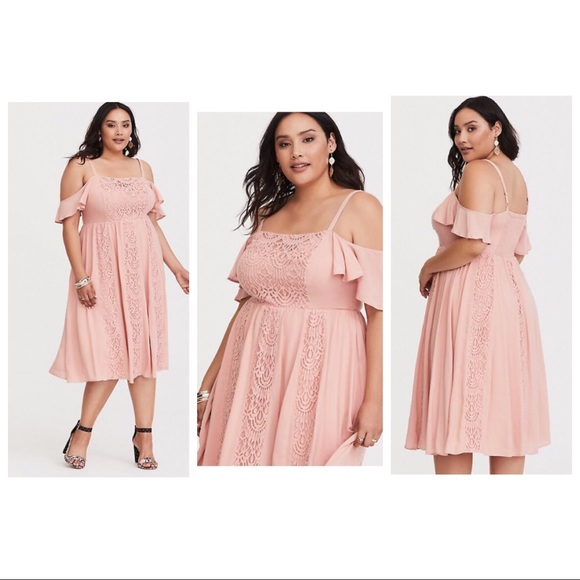 Shoulder Dress With Lace Nwt torrid pink dress