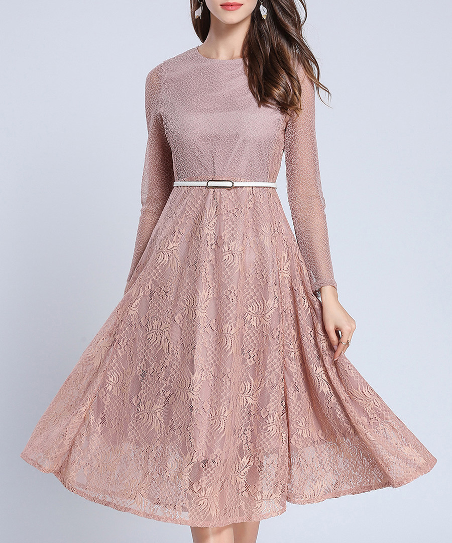 2pc pink lace midi dress