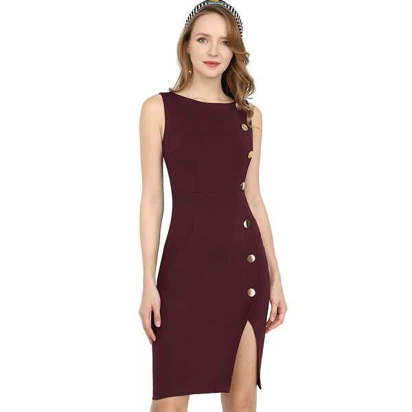 Shop Women's Button Decor Sleeveless office dress for girl