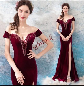 Sexy Lady velvet Long Party Dress Slit long party dresses ebay