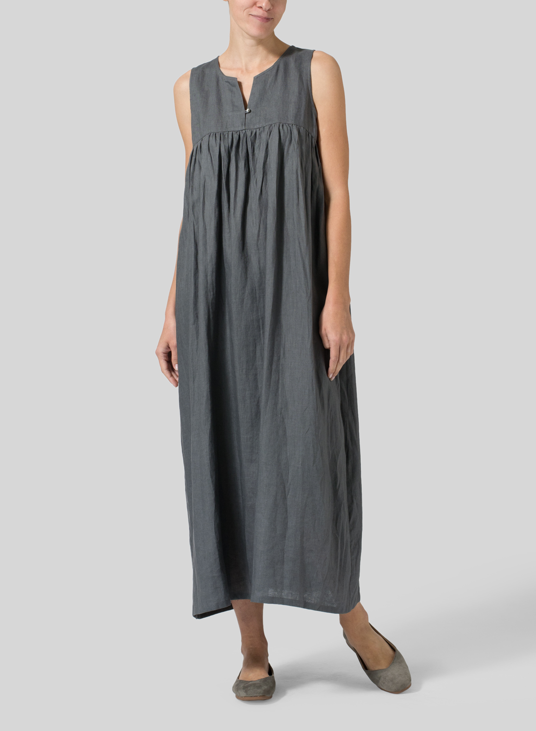 Linen Sleeveless Pleated Maxi Dress plus size pleated maxi dress