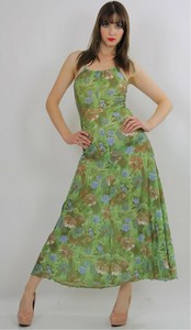 Vintage 70s green floral midi dress sundress green