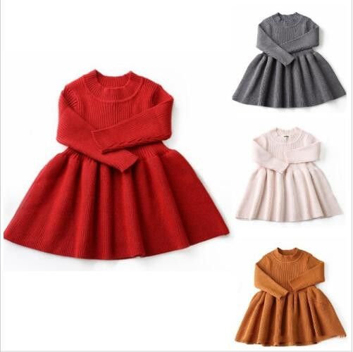 2020 Chirstmas Baby Girls Knitted toddler red sweater dress