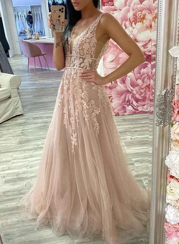 2021 Baby Pink A Line Prom Dresses High