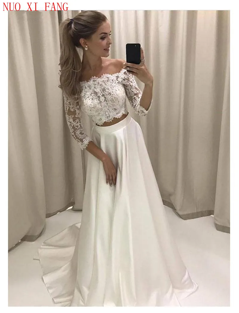 White Boho Wedding Dress Lace 3/4 white bohemian wedding dress