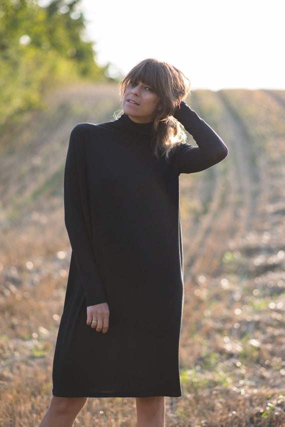 black cashmere turtleneck dress