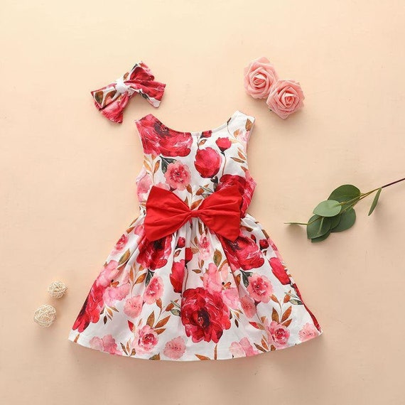 Baby Girl Toddler Red Floral Dress girls red floral dress