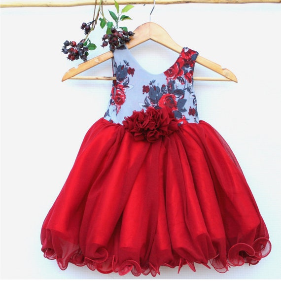 Red floral dress Little girl dresses girls red floral dress