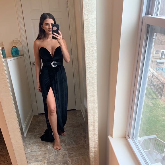 Brand New Black Velvet Gown pretty little thing black velvet dress