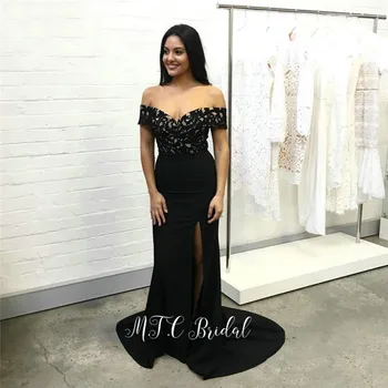 Off-shoulder Black Mermaid Prom Dress black mermaid prom dresses 2019