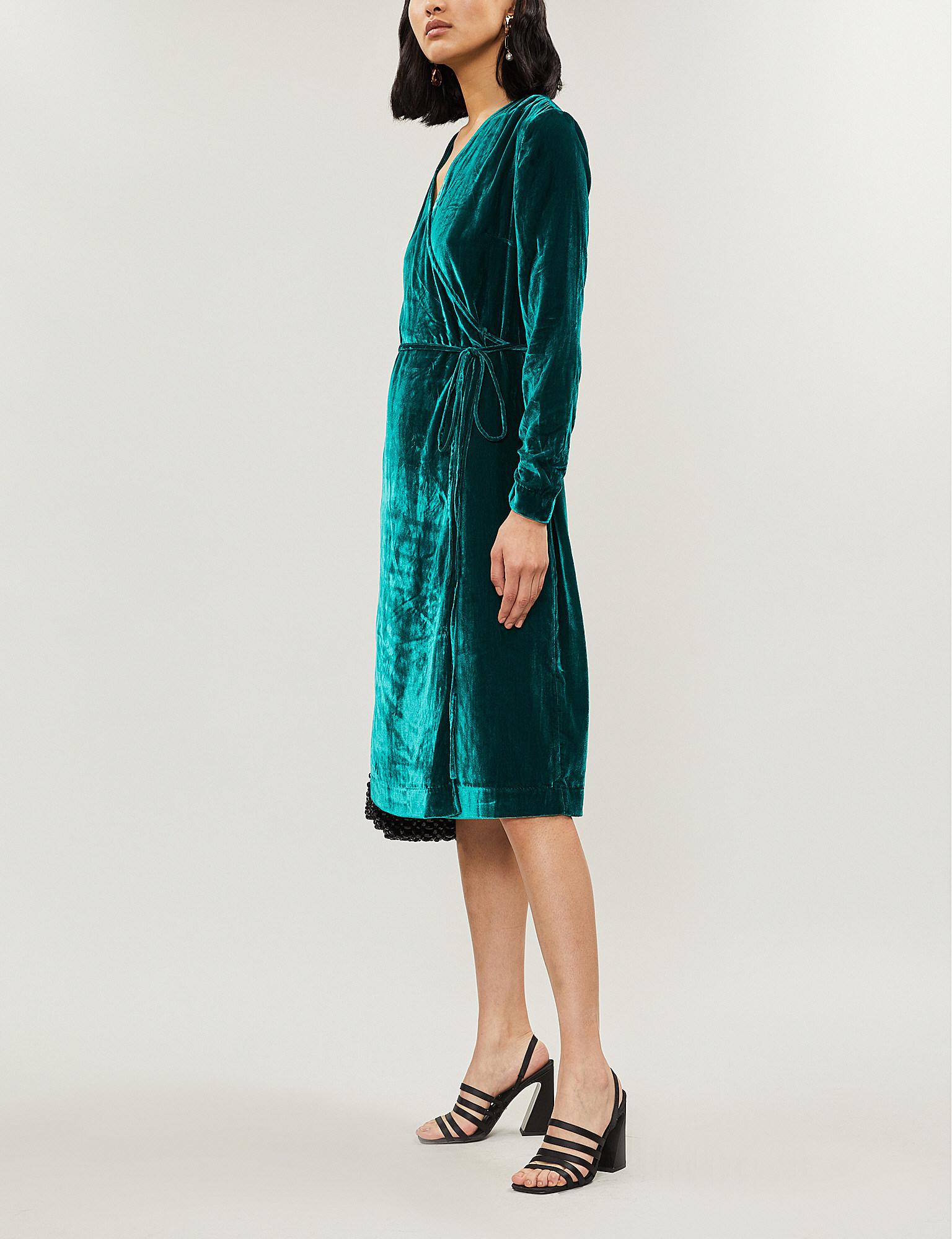 Crushed Velvet Wrap Dress by Maggy green velvet wrap dress