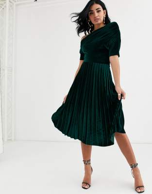 ASOS DESIGN fallen ruched shoulder asos pleated dress uk
