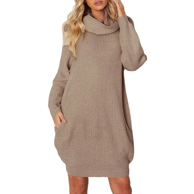 Women's Knitted Turtleneck Long Sleeve loose bodycon dress