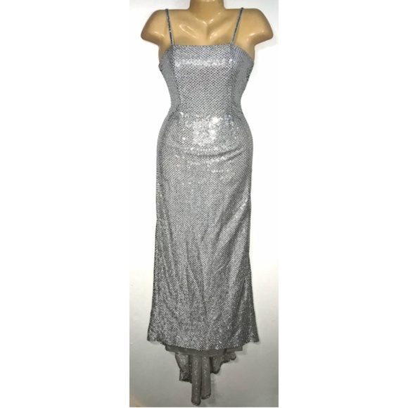 silver sequin evening gown
