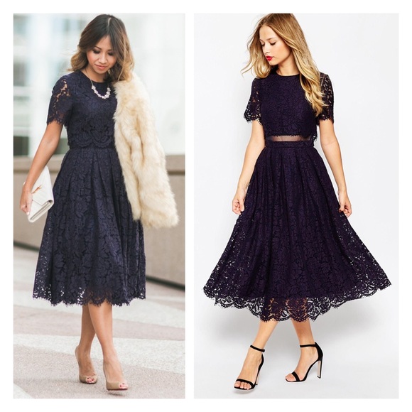 asos lace crop top midi prom dress