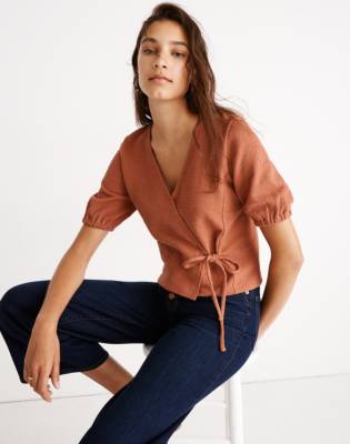 Texture \u0026 Thread Puff-Sleeve Wrap Top sleeve wrap