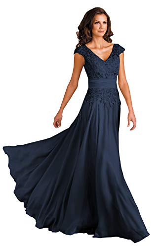Women's V Neck Lace Bodice Chiffon A a line mother of the bride