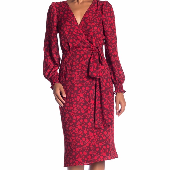 Wrap Dress Bell Sleeves Floral Print max studio wrap dress