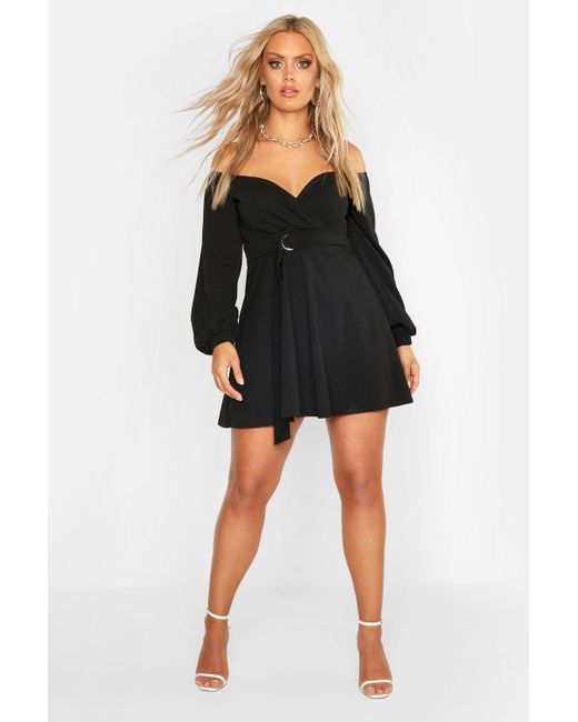Boohoo Womens Plus Crepe Off The black wrap skater dress