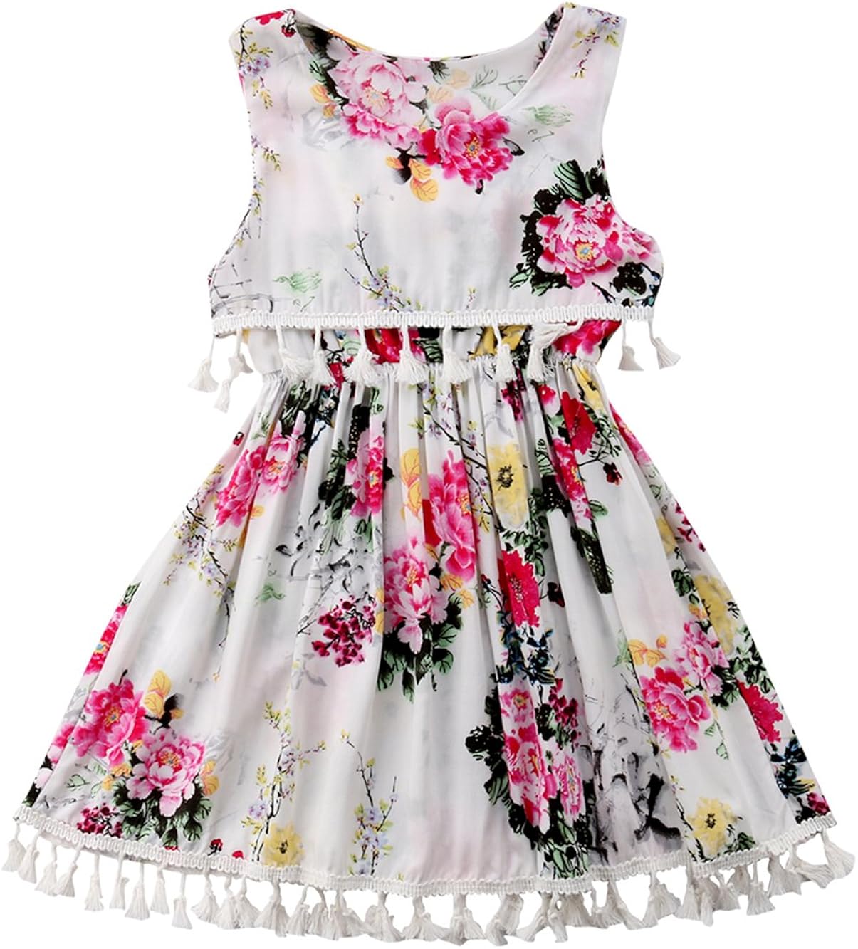 Kids Girls Sleeveless Tassel Floral girls floral party dress