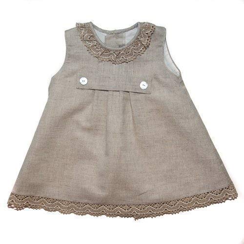 MIMOS Girls' Beige Linen Dress: Handmade girls linen dress