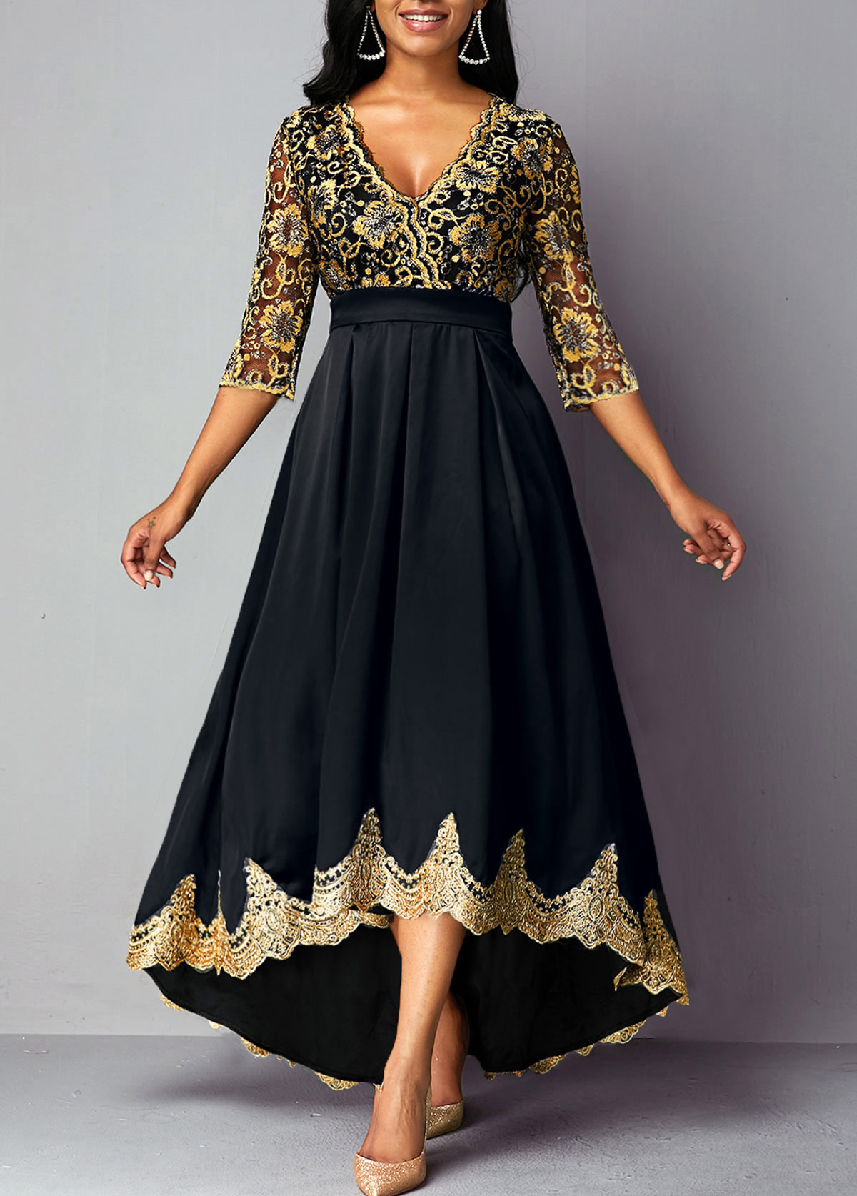 ROTITA V Neck Lace Panel High Waist rotita party dresses