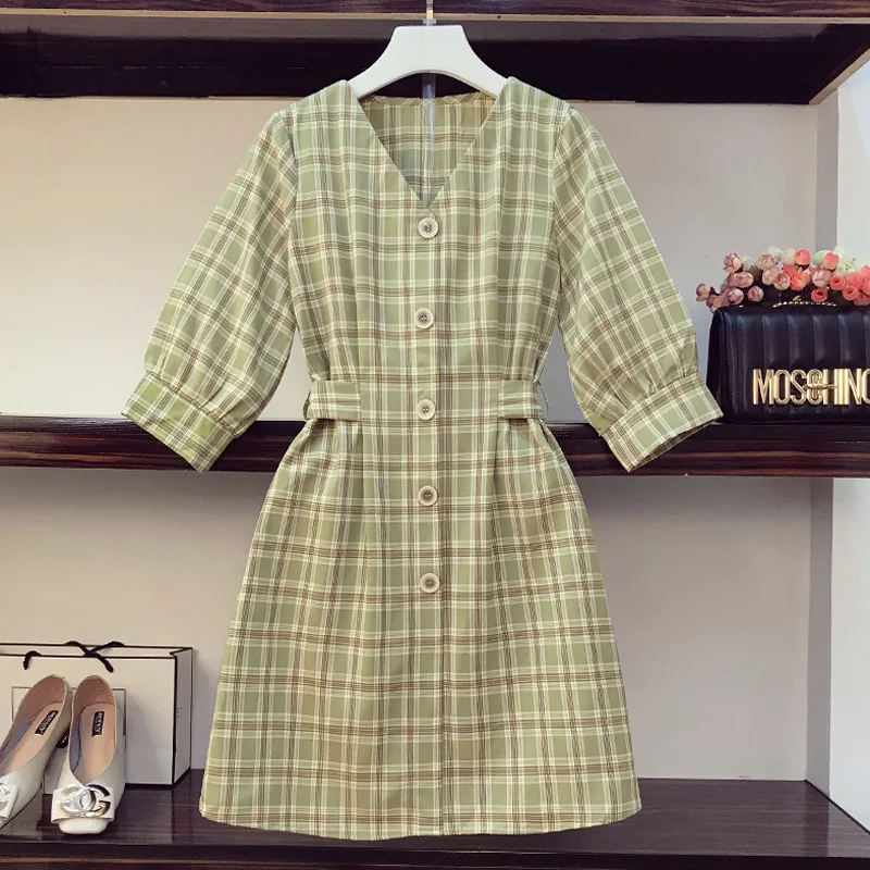 Women Summer Clothes Midi Plaid Shirt plus size plaid shirt dress