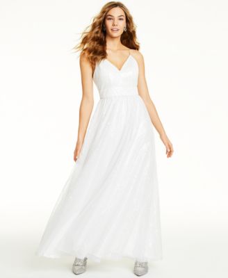 Crystal Doll Juniors' Sequin V-Neck white gown macys