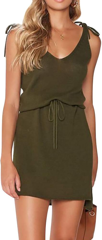 Knot Adjustable Strap V Neck Sleeveless short sundresses