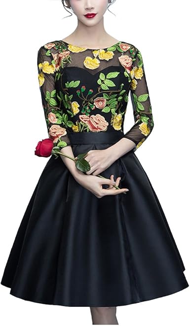 DarlingU Womens Embroidery Floral Round floral embroidered homecoming dress