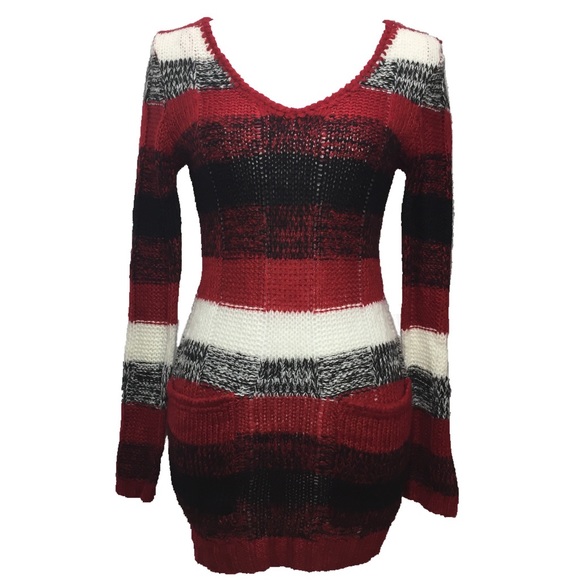 Nwt Rue 21 Red Gray White Sweater Dress red and white sweater dress