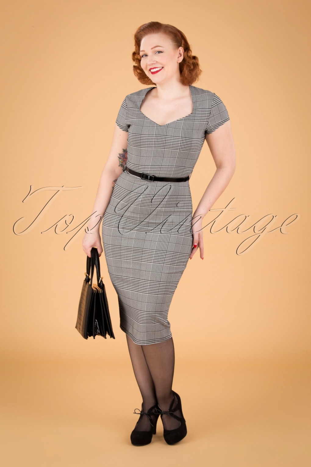 50s Melany Check Pencil Dress in Black pencil dress